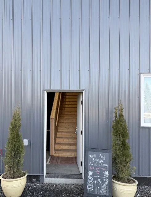 The Well-being Studio is housed in a warehouse, and can be found at the top of a flight of stairs. Look for the potted trees in front of a door.